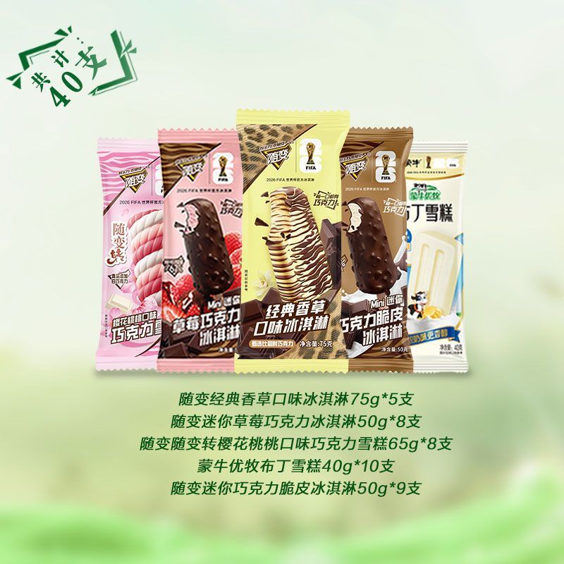 40蒙牛脆皮草莓随变经典香草樱花桃桃口味巧克力冰淇淋雪糕混装