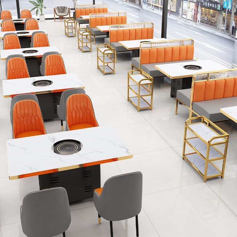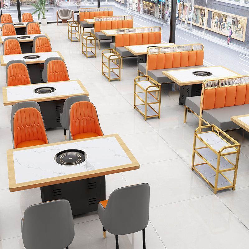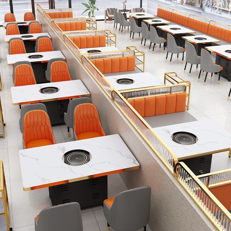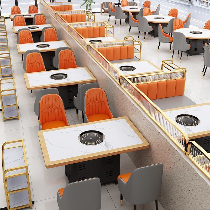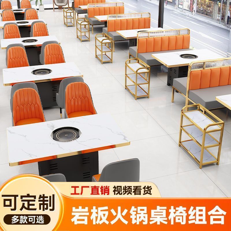 实木岩板火锅桌椅商用电磁炉一体大理石桌子无烟烤肉组合卡座沙发