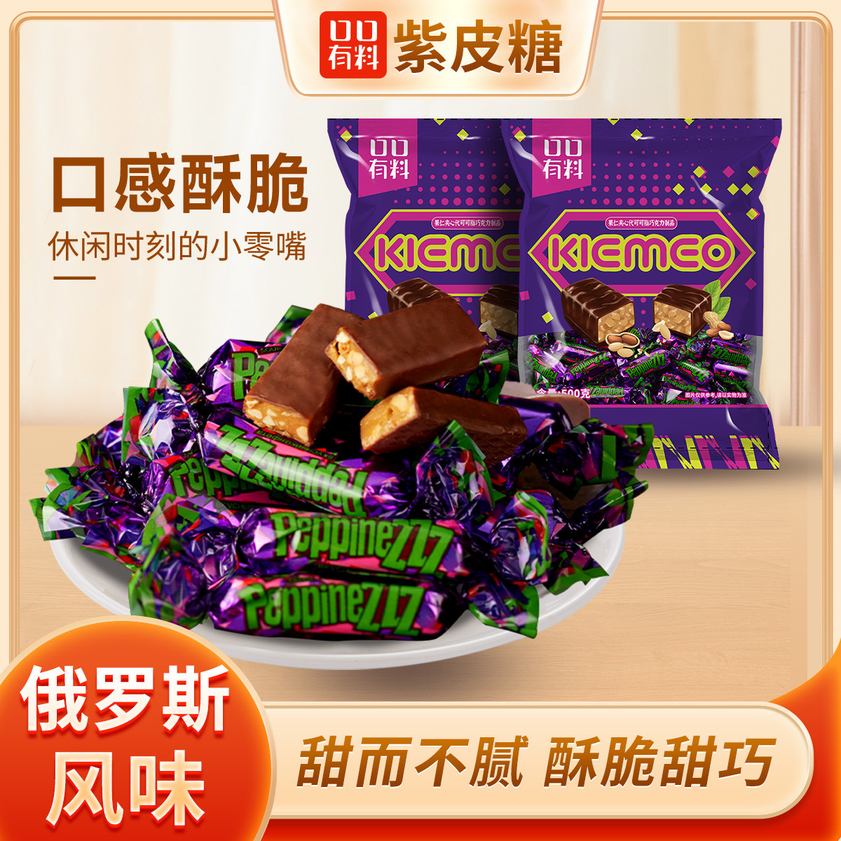 口口有料 紫皮糖巧克力糖果结婚庆喜糖过新年货零食俄罗斯风味网红小零食品