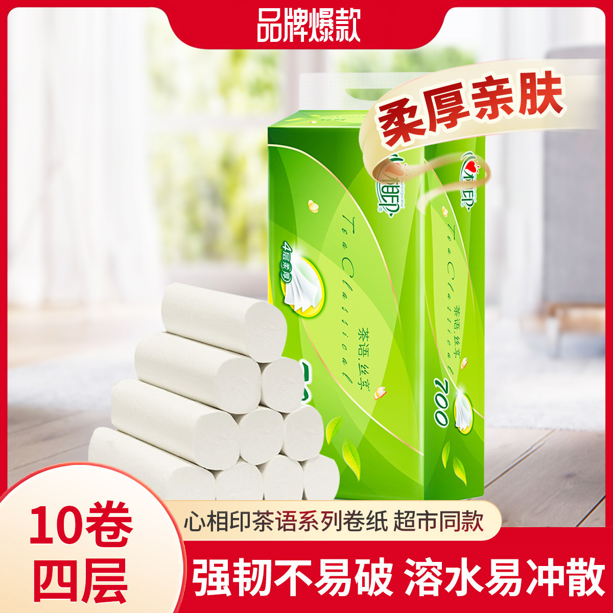 心相印 【超值60卷】纸巾无芯卷纸4层1提/6提卫生纸家用厕纸手纸实惠装