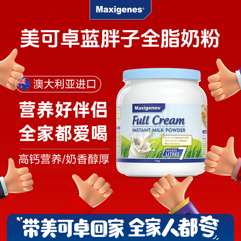 Maxigenes 澳洲进口 蓝胖子全脂成人奶粉学生奶1000g
