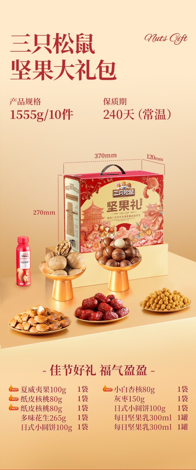 三只松鼠 坚果大礼包10件/1555g袋森林款节日礼盒零食年货送礼