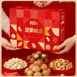 年货坚果礼盒新年送礼纸皮核桃黑芝麻白巧花生支持定制企业团购