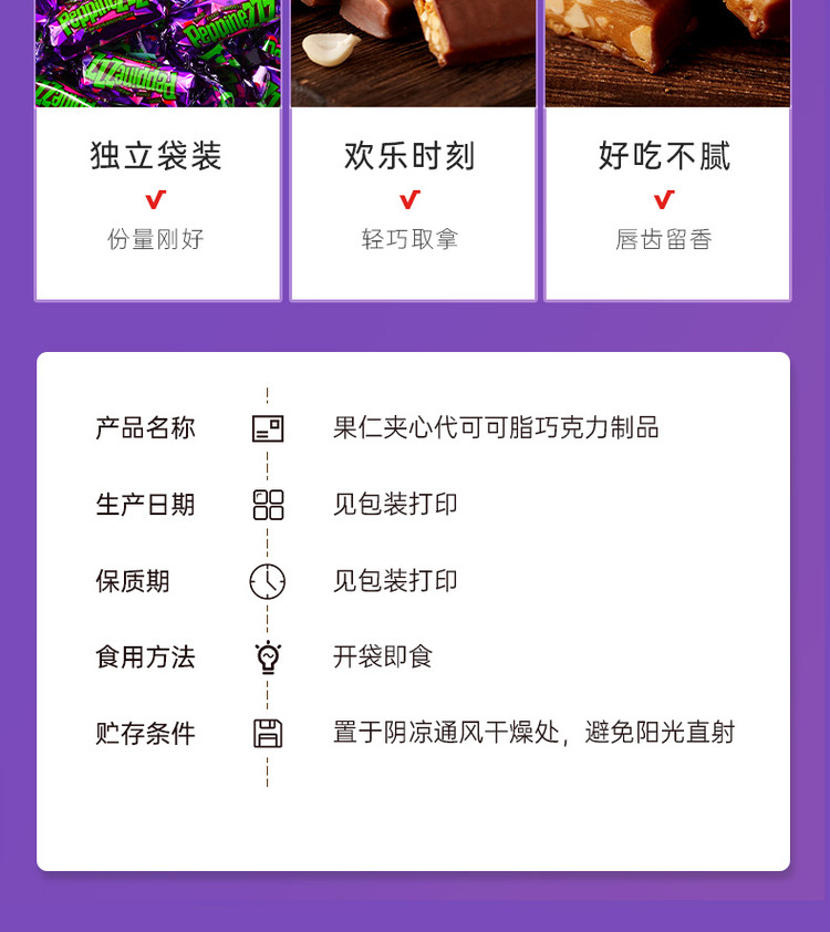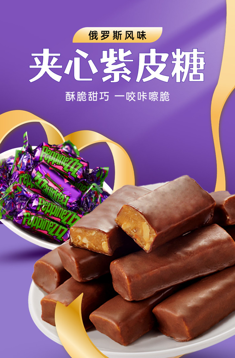 口口有料 紫皮糖巧克力糖果结婚庆喜糖过新年货零食俄罗斯风味网红小零食品