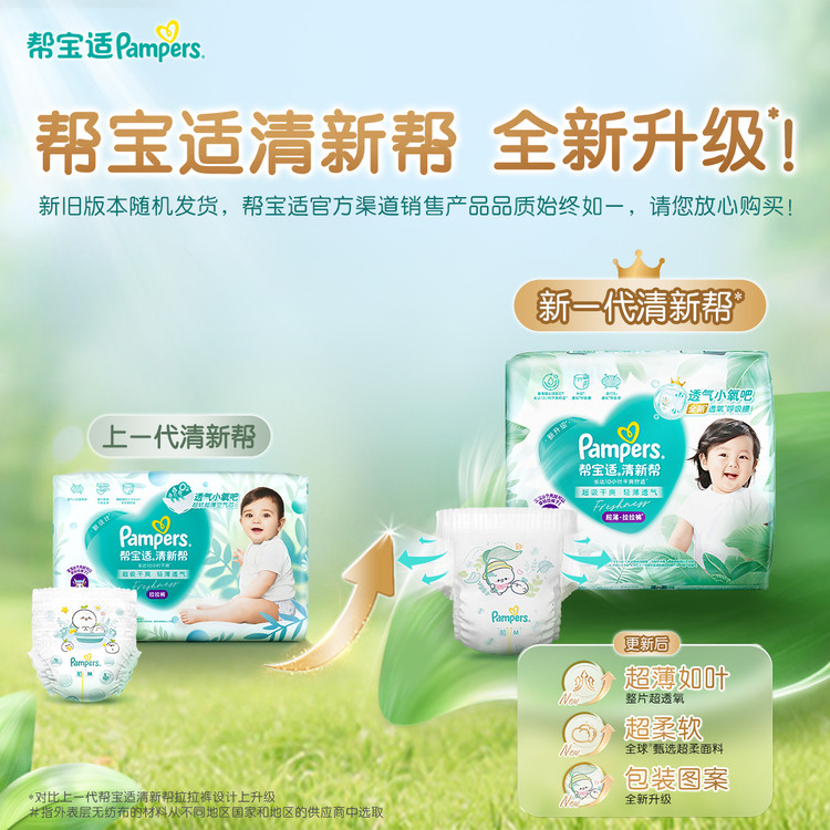 帮宝适 【年度爆款】清新帮拉拉裤L-XXL超薄透气尿不湿婴儿尿片