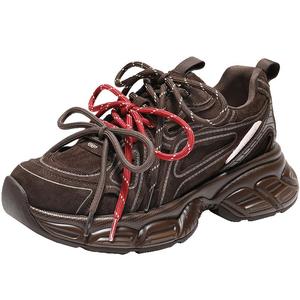 百丽女鞋子厚底增高老爹鞋棕色新款美拉德运动休闲鞋B2945AM6