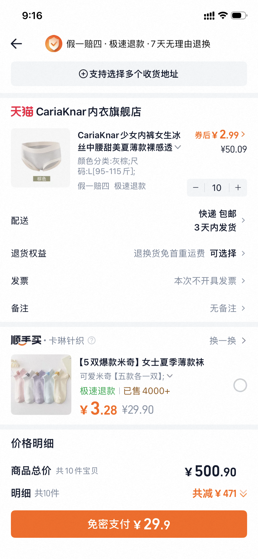 CariaKnar少女内裤女生冰丝中腰甜美夏薄款裸感透气裆女士三角裤